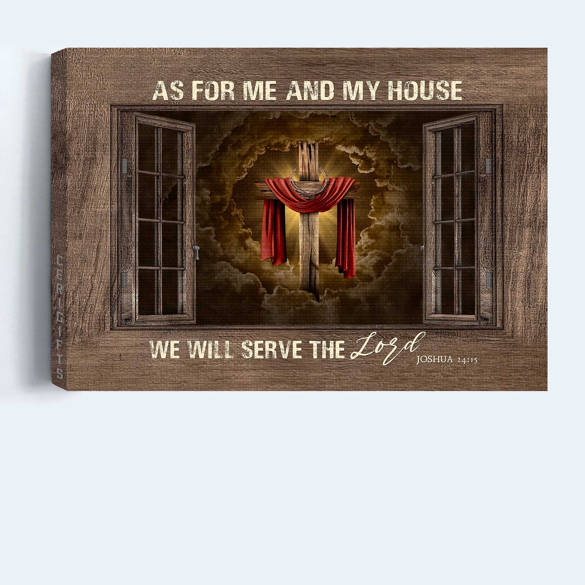 Jesus Landscape Canvas - Wooden Window, The Amazing Cross, Heaven's Light Canvas - Gift For Christian - As For Me And My House, We Will Serve The Lord