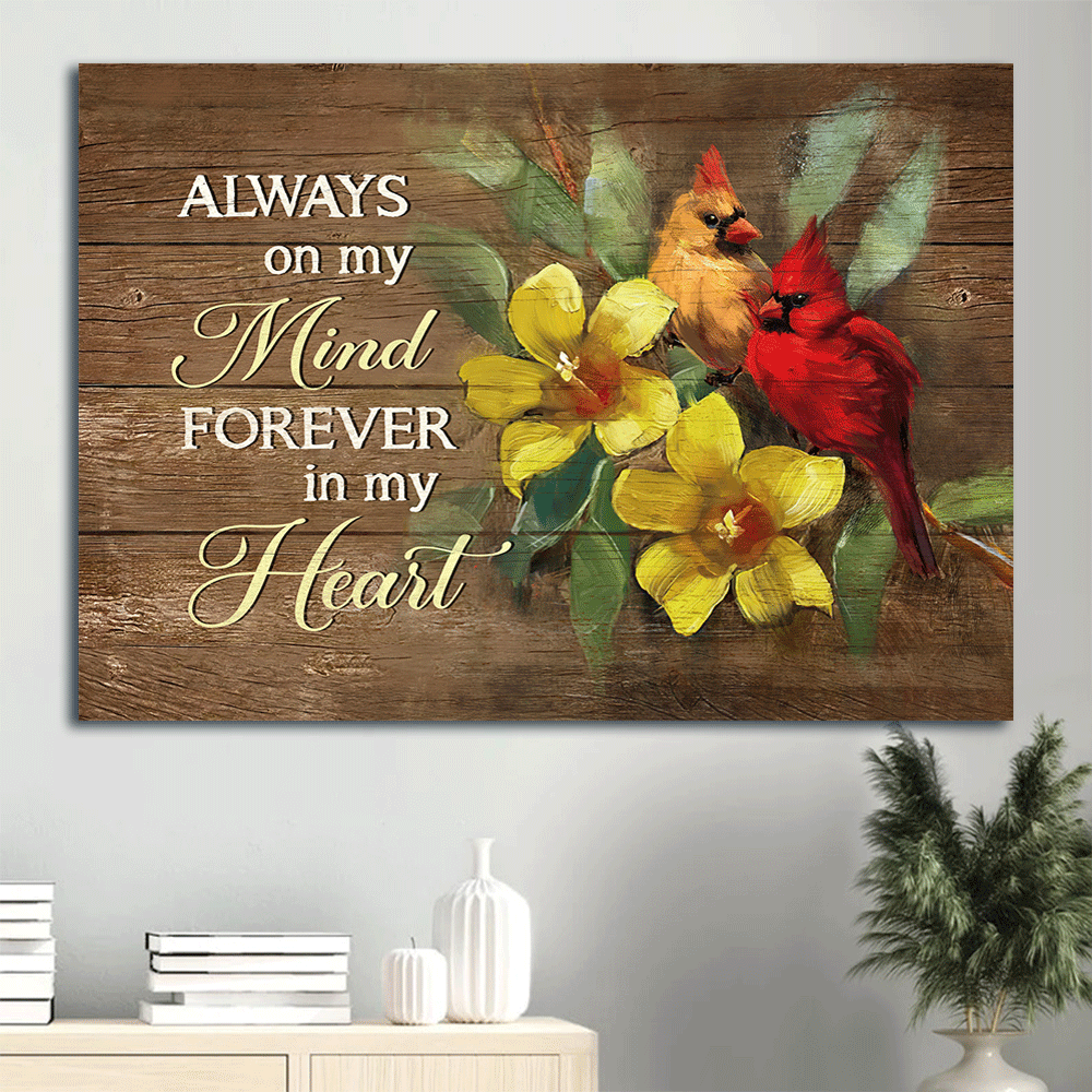 Heaven Landscape Canvas - Yellow Bell Flower, Watercolor Cardinal Memorial Canvas - Memorial Gift For Member Family - Always On My Mind Canvas Prints, Wall Art is suitable for any room in your house.