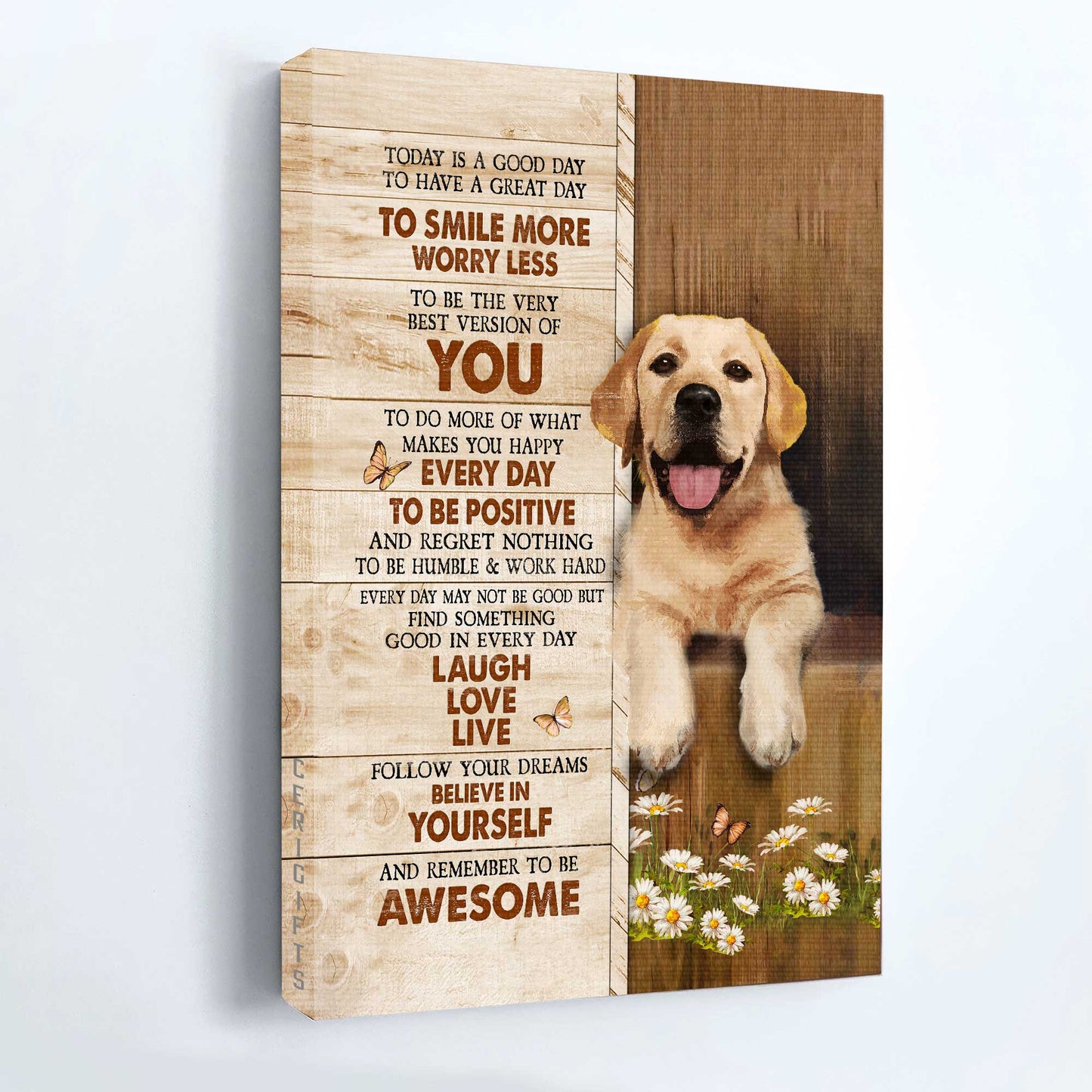 Do you want to add some joy to your living space? Then, this amazing Labrador Retriever Dog Portrait Canvas - Yellow Labrador, Daisy Flower Canvas - Gift for Labrador, Dog Lovers - Believe In Yourself And Remember To Be Awesome Canvas Prints, Wall Art is the perfect option for you!