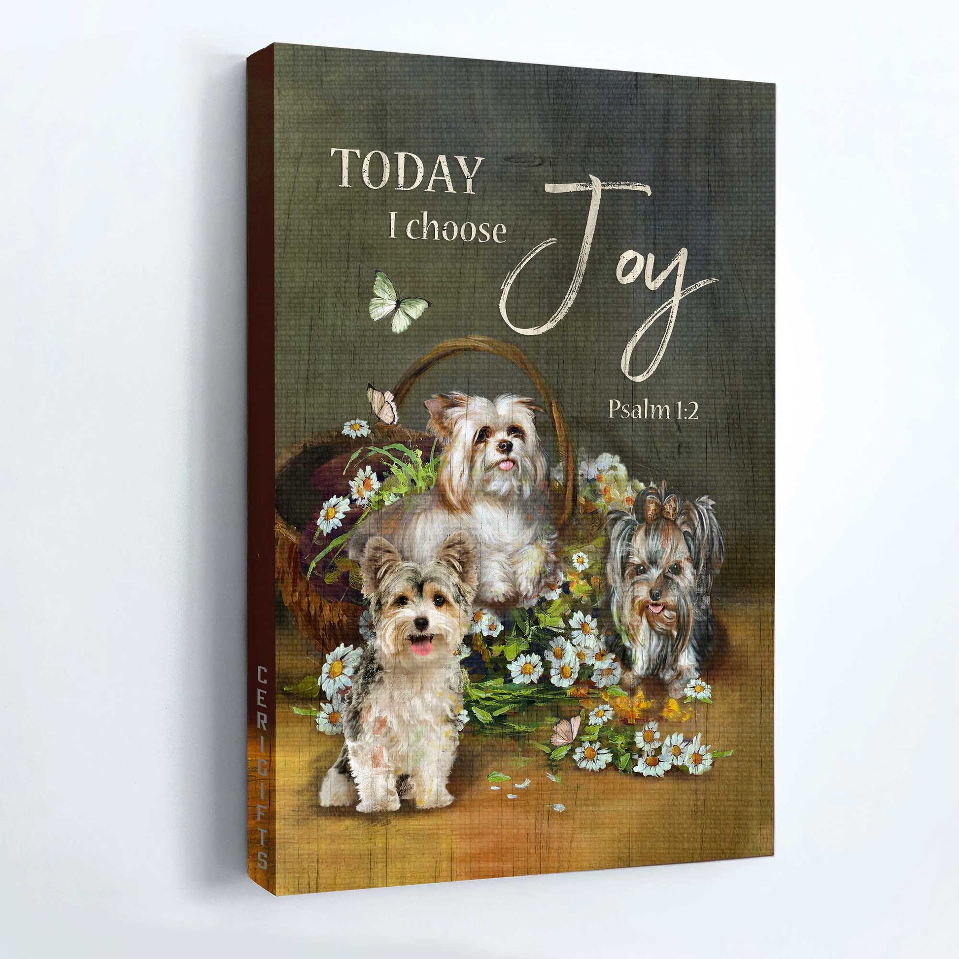 Yorkshire Terrier Dog Portrait Canvas - Yorkshire dog, Daisy Painting Canvas - Gift for Yorkshire Terrier, Dog Lovers - Today I Choose Joy Canvas Prints, Wall Art suits any room from the kitchen, bedroom, bathroom, living room to outdoor space.