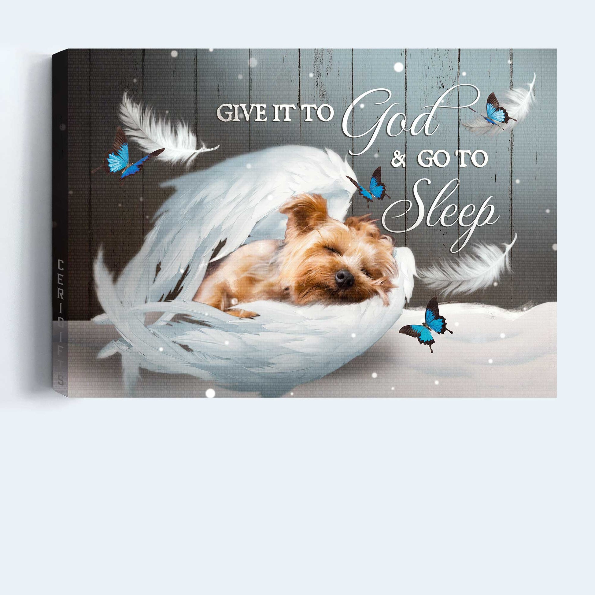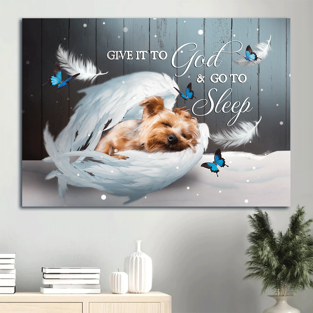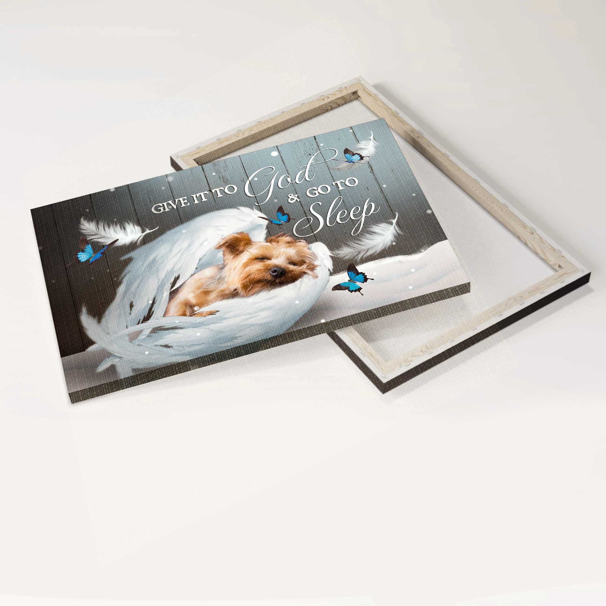 Yorkshire Terrier Dog Landscape Canvas - Yorkshire Terrier, Angel Wings, Blue Butterfly, Jesus Landscape Canvas - Gift for Yorkshire Terrier, Dog Lovers, Christian - Give It To God And Go To Sleep is a wonderful picture that can be hung in any room in your house, such as the living room, bedroom, kitchen, or even outdoor space.