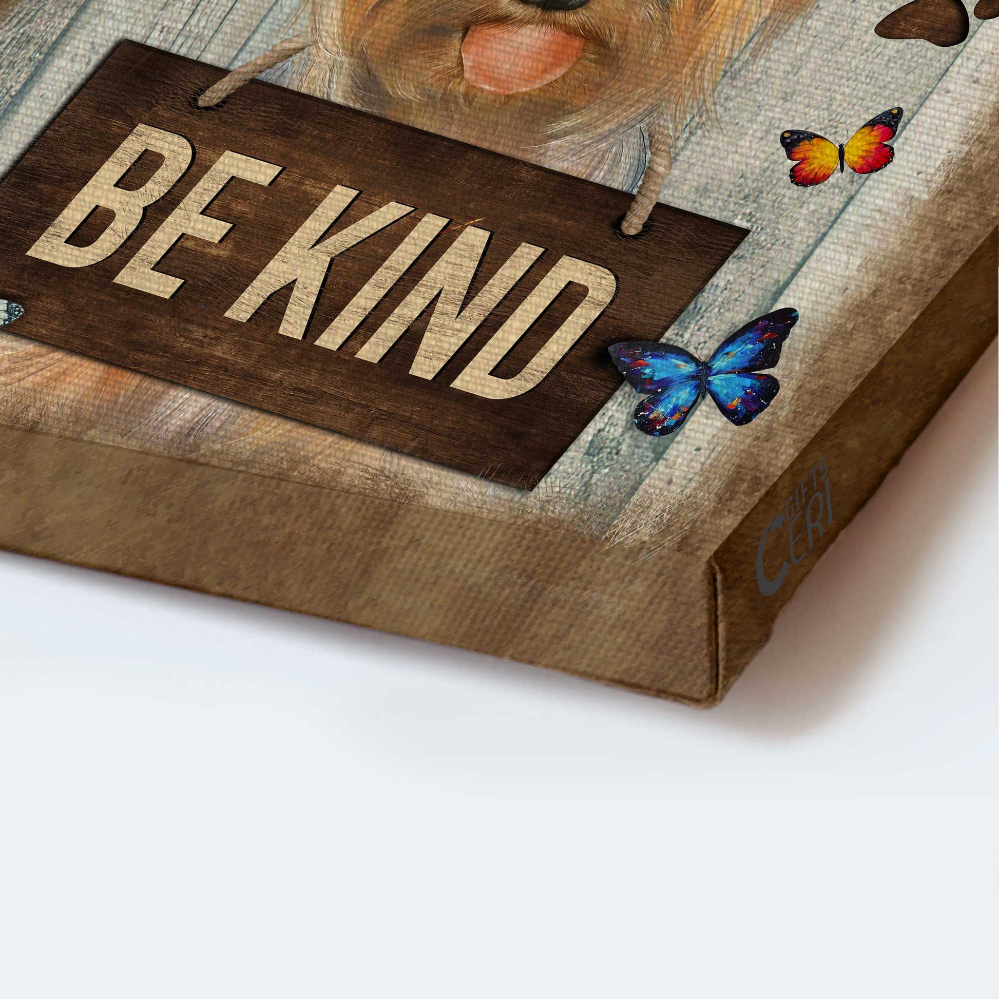 Which canvas do you think would light your space up the most? Do you like dogs? Then, this Yorkshire Terrier Portrait Canvas- Cute Yorkie, Blue butterfly canvas- Gift for Yorkshire Terrier lover- In a world where you can be anything is probably the perfect pick for your home.